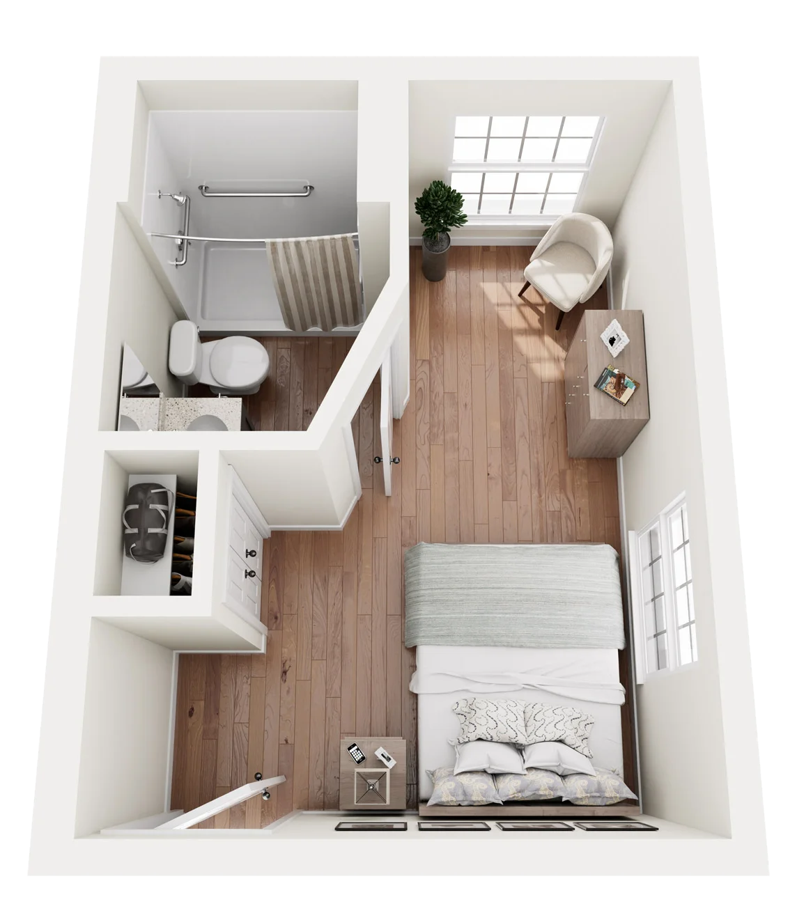 Our various studio apartments are designed for your loved one’s safety and comfort. With a full-service bathroom and closet space, your loved ones’ needs are in good hands with The Indigo at Elmhurst.